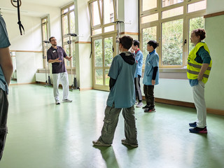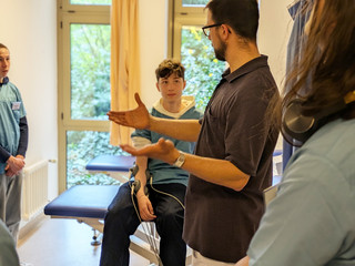 Im Sportraum wurden den Schülern verschiedene Übungen in der Physiotherapie vorgeführt.
